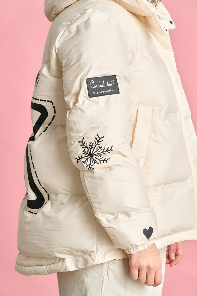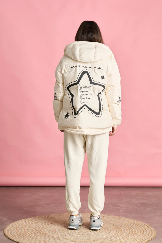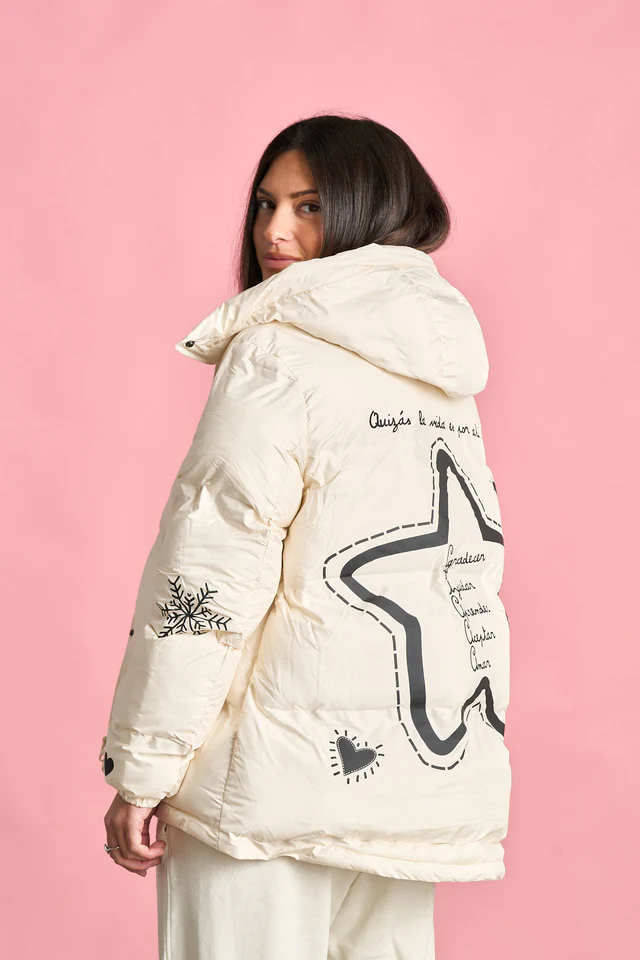 -Plumífero corto, de corte evasé y largos desiguales, de EDICIÓN LIMITADA.