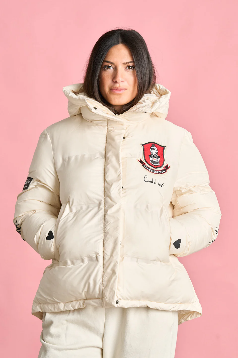 – Maxi print serigrafiado en espalda, con detalle de print sobre los codos y corazones en los puños.